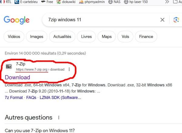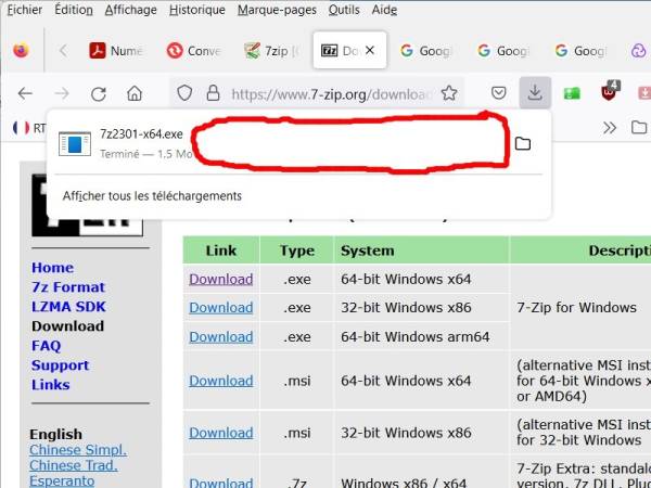 - Télécharger le fichier 7zip pour Windows 10 ou 11.