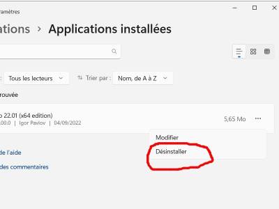- Un petit menu apparait, clic sur Désinstaller .