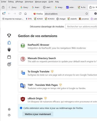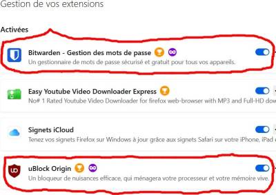 - Pour commencer, les extensions, comme “Bitwarden” la gestion des mots de passe et le bloqueur de pub “uBlock Origin”.