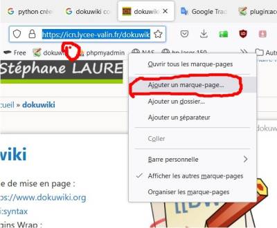- Clic droit sur la barre personnelle un sous-menu s'affiche sélectionner “Ajouter un marque-page”.