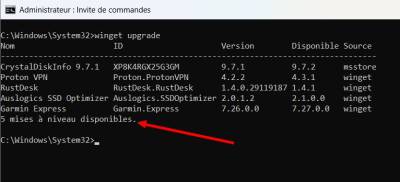 -Tapez “ winget upgrade ”, pour savoir combien peuvent être MAJ.