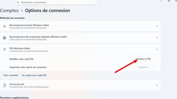 - Choisir “Configurer la connexion par code PIN”.