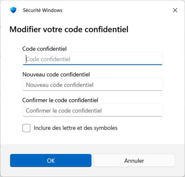 - Cliquer sur le bouton “Modifier le PIN”.